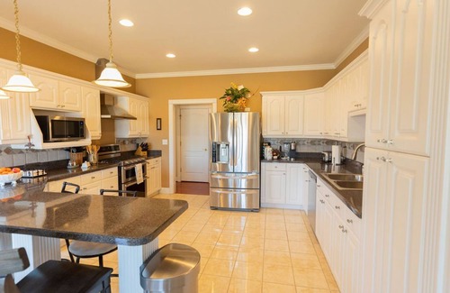 Located in the back of the prestigious Persimmon Ridge golf course community, our house is a private getaway with scenic views of the large pond behind the house. On any given day, you’ll likely spot deer grazing in the fields, eagles looking for fish in the pond, along with other wildlife which you have plenty of patio space to view from. This 3-bedroom house is perfect for your escape to Louisville. This cozy property offers a tranquil retreat for guests. With 3 beds, several reclining couches, and a blow-up queen mattress, there's plenty of space for everyone to relax and recharge. The 3 full bathrooms have all the amenities you will need (including hair dryers) for added convenience. You'll also find amenities like an iron, washing machine + dryer, AC, WiFi, and heating. This property is a 15 min. drive to Valhalla and a 30 min. drive to Churchill Downs.