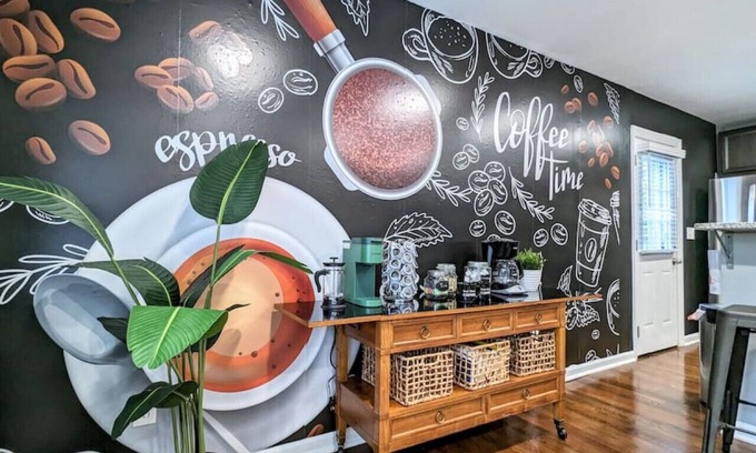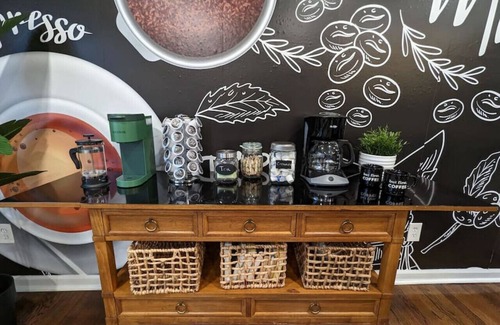 You'll love our coffee mural and bar right off the kitchen as well as the outdoor space. We have a BBQ grill and firepit with seating for your enjoyment.