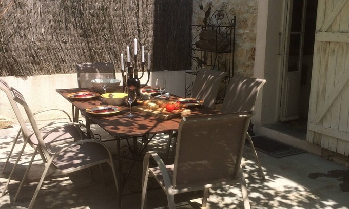 Spacious, high-ceilinged, homely apartment conveniently located in the centre of Bargemon. Sleeps 4 comfortably in 2 separate bedrooms, with King size bed in the main room and 2 single or 1 King size bed in the second bedroom. (There is an option of sleeping an extra 2 on double sofa bed in the sitting room). There are South facing views of valley from main bedroom and sitting room, and to the north, direct kitchen access to large outside terrace with a few steps up to another terrace for extra sun and dining options! Outside dining table seats 6 comfortably. All rooms are on the first floor, accessed by one flight of stairs.The sitting room/dining area has direct access to a modern, well equipped large kitchen with 5-burner gas hob, lots of counter top space, fridge freezer, dish washer, and use of many kitchen gadgets. We don't have a coffee machine but we do have a coffee grinder with cafetiere and Moka pots. Bathroom comprises newly renovated shower, wc and whb and is directly accessed from both bedrooms. Bargemon is a picturesque, arty village with lots of history, good restaurants, bakeries and basic essentials.