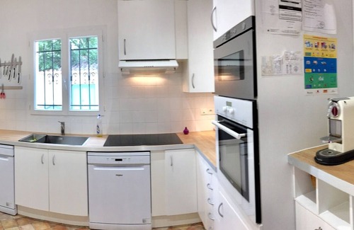 In the heart of the Cèze valley, between Uzès and Pont-St-Esprit, 2 steps from the Marmites of Roque sur Cèze, a small hamlet is home to the Villa Matignonne with a Mediterranean garden of 2. 500 m2. This Provencal villa of high standing offers 270 m2 of living space and comfort for 12 people. It consists of 3 independent areas with 2 bedrooms, a bathroom, dressing room and separate toilet is a total of 6 bedrooms, 3 bathrooms, 3 toilets plus living room and dining room of approx 60 m2 ground floor overlooking the garden. Fully equipped kitchen, washing machine, dishwasher, double fridge, bread maker, Nespresso. 3 large flat screen TVs, 1 TV, satellite, 4 DVD players, more than 100 DVDs, hi-fi, piano, wii ... Provencal terracotta floors and design and functional furniture. For your relaxation, the garden will offer two different places, one on the terrace (partially shaded) for your meals, barbecue, teak garden furniture, the other sunny around the pool secured by electric shutter (12 x 6 m) surrounded by a spacious beach slabs of Luberon. In the very large garden, trampoline, ping pong, petanque, bikes, children's hut, slide, gantry with swings, pool games, etc. Garden with fruit trees very productive throughout the summer (pears, apples, plums, all organic). No animals. Free and sunny all year. 3 of the 157 most beautiful villages in France nearby. Week 2400 € to 3. 600 €, depending on season. Comfort. The house is accessible for elderly people or with difficulty to climb steps as it can be accessed from the terrace.