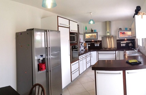 A large fully equipped kitchen opening onto a large shaded terrace where you can take your meals.