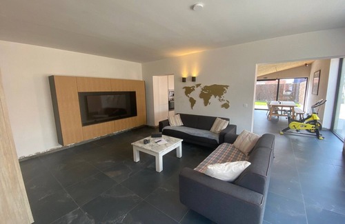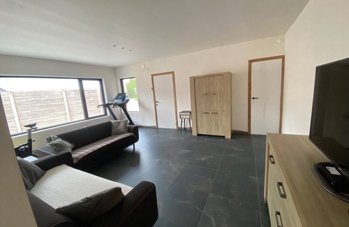 A very spacious house within walking distance of the center of Maldegem, with plenty of natural light and every comfort. From a flat-screen TV, treadmill, and spinning bike, even to a BBQ, everything is provided. Comfortable beds and easy access to the coast or inland. Knokke is 15 minutes away. Bruges is 20 minutes away. Ghent is 30 minutes away. Antwerp is 45 minutes away.
