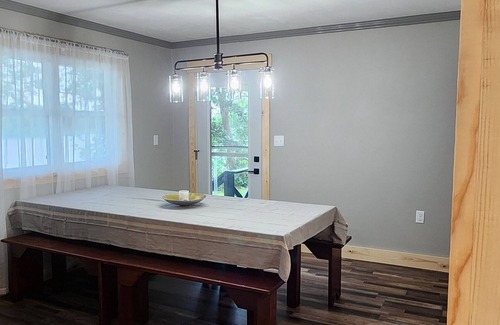 This beautifully renovated 3,200-square-foot home offers the perfect blend of comfort, nature, and adventure. With a spacious, fenced-in backyard, a private dock, and a boat garage, it's a dream destination for fishing enthusiasts and water lovers alike. Relax year-round in the backyard hot tub. Gather around the fire pit on the scenic point, surrounded by water. Inside the house is a full kitchen, with separate dining area. A living room upstairs and downstairs. Washer and dryer located in the basement. along with a game room with board games, ping pong table, outdoor games.