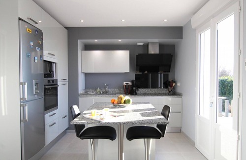 Detached house with basement. Entrance. Living room with open kitchen. Bedroom 1 (1 double bed). Bedroom 2 (1 double bed). Bedroom 3 (1 double bed). WC. Shower room. On the 1st floor: bedroom 4 (2 single beds), shower room with WC and bedroom 5 (1 double bed). In the basement: laundry room and garage. Baby equipment. Wood stove. Large flat screen TV. DVD. Wi-Fi internet. Washing machine. Dryer. Dishwasher. Electric heating included. Sheets and towels for hire. Cleaning service included. Private enclosed grounds. Terrace. Garden furniture. Barbecue. Deckchairs. Bicycles available. Pétanque court. Ping-pong. Parking. Non-smoking cottage. Just a few minutes from Coutances and its cathedral, this comfortable house is ideally located on the road leading to the beaches of the seaside resort of Agon-Coutanville. Among the many features, the large south-facing terrace will delight the whole family. It overlooks the countryside and the large landscaped garden. The kitchen is also remarkable and highlights the quality of the amenities provided by the owners. The basement makes the house very functional, and you might even take advantage of the bicycles provided to reach Coutances town center, as a cycle path runs in front of the cottage!