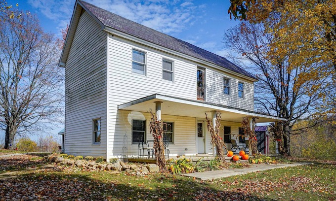 Explore Jackson Lake State Park and Lake Katharine State Nature Preserve when you retreat with loved ones to this peaceful 3-bedroom, 2.5-bathroom vacation rental in Jackson, OH. Inside, you can gather around the living room’s fireplace and share stories, prepare a delicious meal in the well-stocked kitchen, and watch a movie. Later, dine outside on the front porch or enjoy the scenic pond on-site. This spacious and quiet home also features a 3-acre yard, perfect for outdoor games!