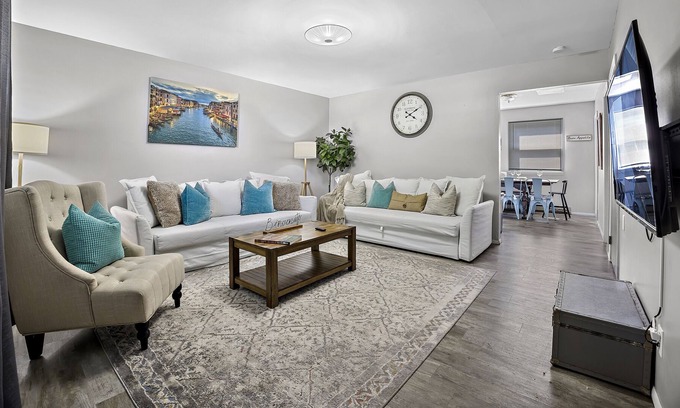 2 Enournmous living rooms with 2 sofa sleepers each.
