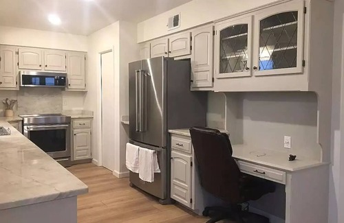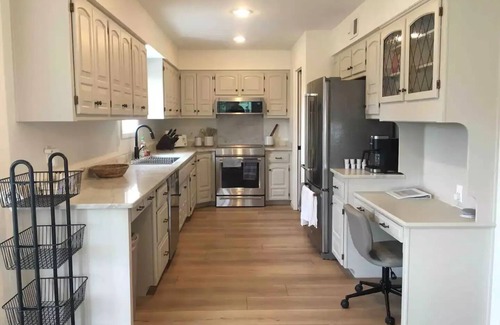 The basement hosts two additional bedrooms (can sleep 2 each) with work desks in each, an exercise space and shuffleboard table. The entire house has excellent natural light from all the windows.