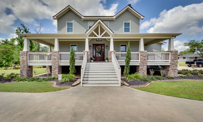 Plan your trip to the 'Henderson Bayou Villa' with this Lake Charles 4-bedroom 3.5-bathroom vacation rental at your home base! You'll be less than a mile from Prien Lake Park, where you can launch kayaks or take a picnic lunch. After fun-filled days, recline on the wraparound porch, curl up with a book in the library, or stream your favorite shows on the Smart TVs. It’s up to you!