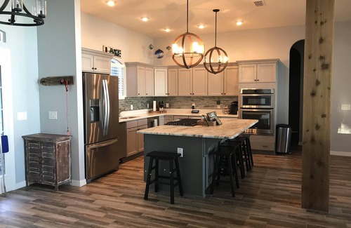 Experience the ideal wedding stay at the Spacious Lake House with Dock and Private Beach, where breathtaking lakeside views and modern amenities combine to create a romantic atmosphere for your special day.
