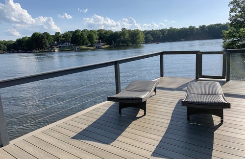 Casa del Lago is comfortable and beautiful, located on picturesque Lake Gaston - a fantastic place to get away, relax, enjoy nature, and have fun. Every level of Casa has stunning views of the lake with porches on all 3 levels, including a screened-in porch. It is just steps away from the water with easy accessibility and a gradual slope to almost 140 feet of lake frontage! We have a large, beautiful dock with Internet located in a protected cove so your family can swim without concern of boat traffic. It has a large swim platform you can swim/jump/fish off of and an upper sun deck for you to enjoy the sun and incredible views! It also has a jump gate and platform for extreme fun. You don't need a boat to enjoy this lake as we provide Kayaks and Stand Up Paddle Boards for you to get out on the water for further fun in the sun and nature. If you bring or rent a boat, we are very blessed to have over 14 feet of deep water at the dock and in a cove that protects your boat from wakes as well as a private community boat ramp to launch from. This spectacular home is located on Great Creek, which has a 2.5 mile long watersport lane and is only 8 min from Interstate I-85. You will not have to fight boat traffic here at Great Creek!