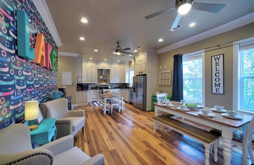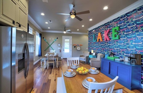 This incredible home features 4,000 square feet of beautifully designed living space that accommodates up to 12 guests. Enjoy an expansive and fully-equipped kitchen perfect for catering your wedding festivities, alongside multiple gathering areas, including an outdoor patio with a propane grill and fire pit for evening celebrations. The property also boasts shared access to a community dock with kayaks and paddleboards for leisurely activities, making it easy to unwind after your big day. With its comfortable bedrooms and vibrant common areas—complete with entertainment options such as a 75" smart TV, ping pong, and cornhole—your group will find everything needed for relaxation and fun.