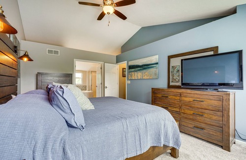 As you settle into this 3-bedroom, 2.5-bathroom rental, you'll find a living room, a fireplace, air conditioning, and a ceiling fan. Connect to the free WiFi, or get cozy in front of the TV. Prepare a home-cooked meal in the kitchen, complete with an oven, a stovetop, and a dishwasher, as well as an ice maker, a microwave, and cookware. Other amenities include bed sheets and an ironing board.