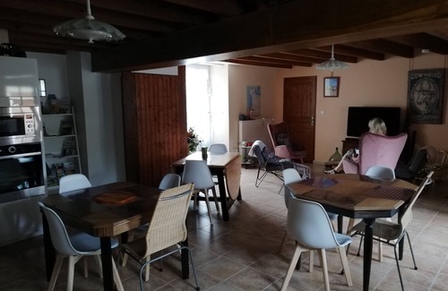 Independent entrance - indoor parking - garden tables on wooded land overlooking the pastures and as visitors geese and chickens in freedom.