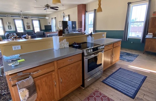 The oldest building in downtown Lewiston built in 1896. This building was renovated in 2005 when we added living space to the upstairs level which was a store room for the hardware store. We kept the character of the building and transformed the upstairs into a spacious loft. Our loft will be spotless and well sanitized for your stay. We have cooking utensils , dishes ,microwave and a Keurig coffee pot.