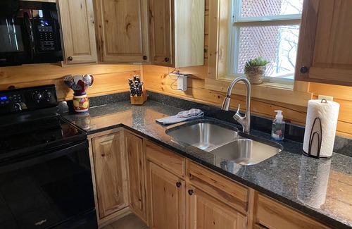 Step outside to enjoy the 6-person hot tub on the upper deck, overlooking a private, wooded hillside. A 4-burner Blackstone griddle and outdoor fire ring make it easy to enjoy meals and evenings outdoors.