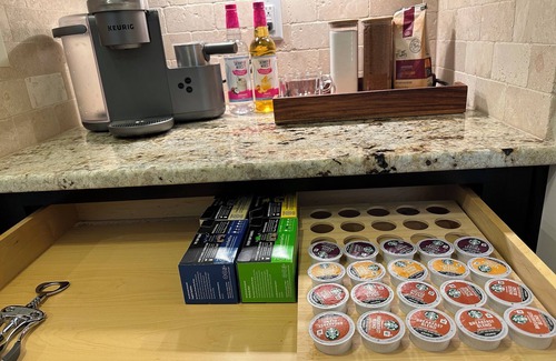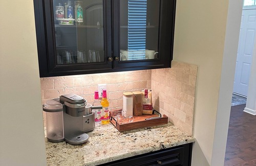 In the kitchen and dining areas, we provide paper towels, napkins, dish soap, and basic cleaning supplies. You'll also enjoy an assortment of sweeteners, a selection of teas, mixers, K-Cups, ground coffee, and general cooking ingredients like oil, salt, pepper, and spices.