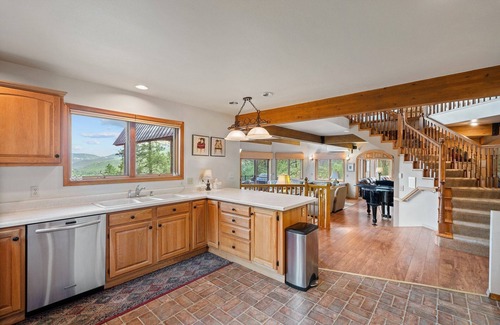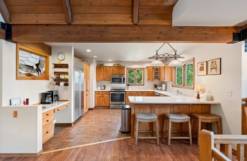 Your stay includes exceptional features that cater to every need for your group, including five beautifully appointed bedrooms and 5.5 baths, accommodating up to 21 guests comfortably. The expansive living area is adorned with floor-to-ceiling windows showcasing stunning mountain vistas, while the fully equipped kitchen makes catering for your wedding festivities a breeze. Enjoy the private hot tub under the stars, spacious balconies, and various cozy gathering spots, all ideal for capturing precious memories during your wedding getaway. The home is also dog-friendly, allowing your furry family members to join in the celebration.