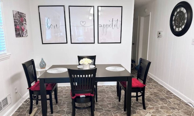 Welcome to your home away from home in Martinsville! This charming house features 4 bedrooms, including 3 queen beds and 2 twin beds. Enjoy the pet friendly and modern comforts such as air conditioning, heating, a hair dryer, a washing machine, a dryer, an iron and ironing board, and WiFi. The 2 bathrooms offer a bathtub/shower combination in one and a walk-in shower in the other. Unwind in this beautifully designed space and create unforgettable memories with your loved ones. Don't hesitate to contact us during your stay—we’re more than happy to recommend local attractions for you to explore