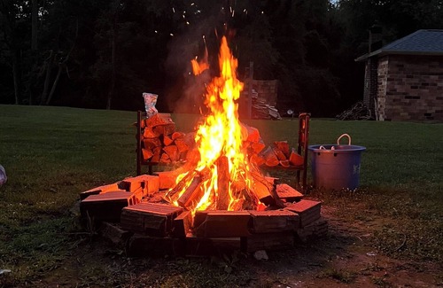 This house is perfect for large groups who want to gather and dine in the dining room or sip tea on the porch while the kids play in the huge, flat yard. Everyone can find their own adventure during the day then return at night to spin their tales by the firepit.