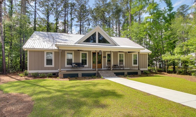 Perfect for an outdoorsy group, this upscale home is situated steps away from Dorchester Shooting Preserve, where you can try your luck hunting or take a fishing excursion! You can truly have it all when you stay at this spacious 4-bedroom, 4.5-bath vacation rental, offering peaceful forested surroundings plus a convenient location just 7 miles from Midway. Venture out to explore Fort McAllister State Park or simply kick back on the porch with your favorite show on the Smart TV.