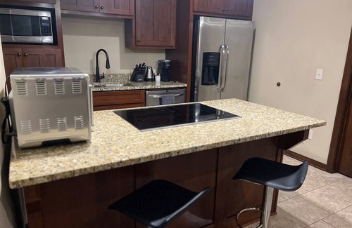 Spacious, quiet, private complete lower-level has everything you need for a long-term stay. Unwind in front of the 65" flatscreen, cook an amazing meal in the chef's kitchen, or get quality sleep in the comfortable bed with black-out curtains. Centrally located just minutes from 3M, Rosedale Mall, shopping centers, hospitals, parks and more. Everything else you might need is within a 20-minute drive such as: downtown Minneapolis, MSP, Mall of America, and Xcel Energy Center just to name a few.