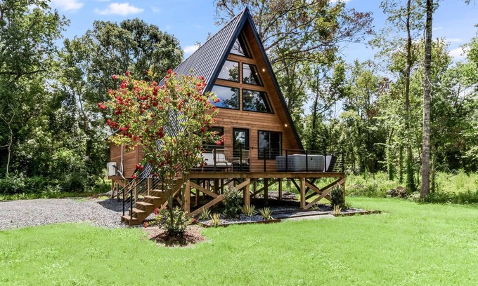 Spacious & Modern A-Frame w/Hot Tub & Fire Pit near Rip Van Winkle Gardens | Cabin in New Iberia
