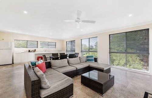 Spacious, modern designed private apartment features a bright and airy open-plan fully equipped kitchen, dining and lounge area as well as a little outdoor setting and BBQ. The apartment is a fully equipped, self-contained holiday unit which can comfortably host up to six guests. There are two bedrooms (Master bedroom 1 x queen bed features air-conditioning; second bedroom 1 x queen bed and 1 x single bunk bed) and two full size bathrooms, one separate toilet and a shared laundry on ground level.