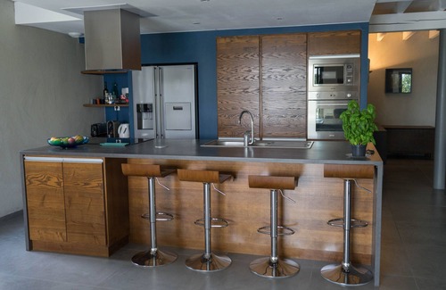 The house is completely open-plan, surrounded by a 110 m2 wooden terrace on 3 sides, which includes the swimming pool and invites you to relax. The terrace enjoys panoramic views over the surrounding countryside. A large tree at the back of the terrace provides much-needed shade on hot summer days.