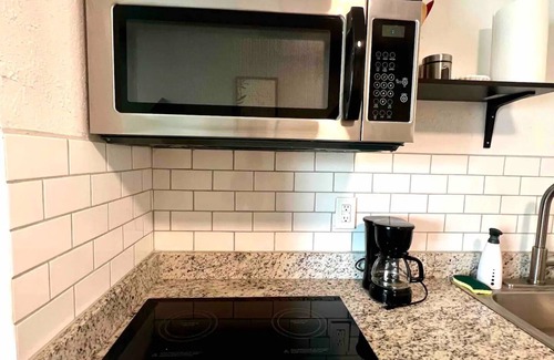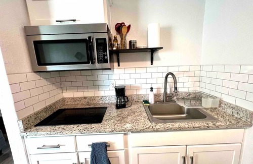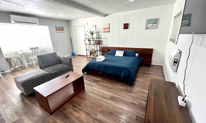 Just Listed! Modern Open Concept Studio Loft with Modern Kitchen, Large Bathroom, Cold A/C, 50" 4K TV and Fiber-fast Internet! Kitchen has granite quartz counter top, a bar-like table with three chairs, a small fridge to keep your beverages cold, a microwave, coffee maker, pots and pans to cook a quick meal. Comfy Queen-size Bed with a Wardrobe, A small desk and chair to work remotely. And a shared washer and laundry as well as a large BBQ to cook perfect steaks! Long stays Welcome! Contact us!