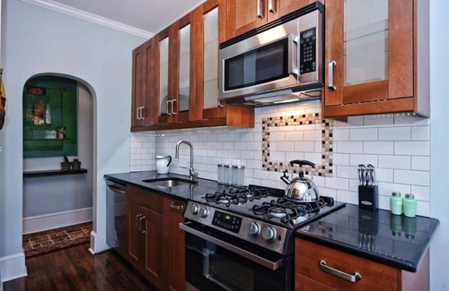 We've maintained the character of this historic 1920's building, while completely updating and renovating the interior. This first floor condo has large double-hung windows that let in an abundance of light in all the rooms. Additionally, the original refinished hardwoods, bathroom tile, graceful arched doorways and two-panel doors provide the charm so often absent in new construction.