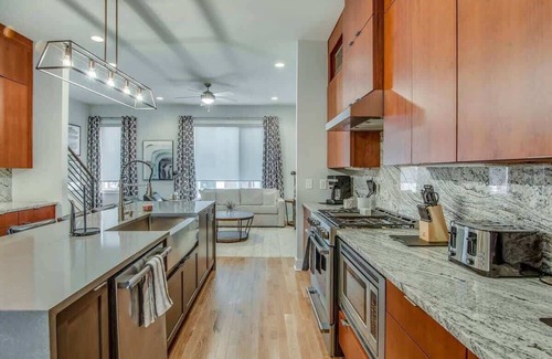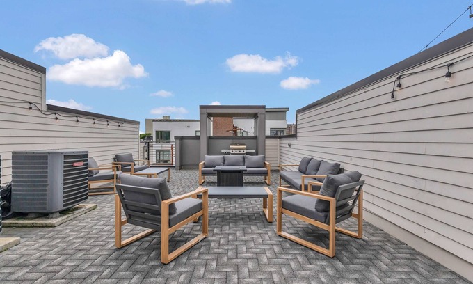 - Chic Music Row Condo Rooftop Deck with City View Gym Office and More