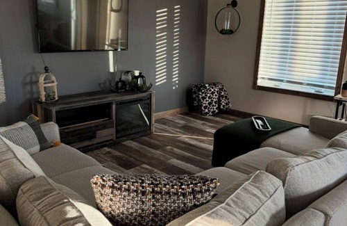 New spacious home on the edge of town, close everything you need. Quiet neighborhood with plenty of space to be outdoors . Nice large family room for entertainment. Brand new bath and bedroom in basement.