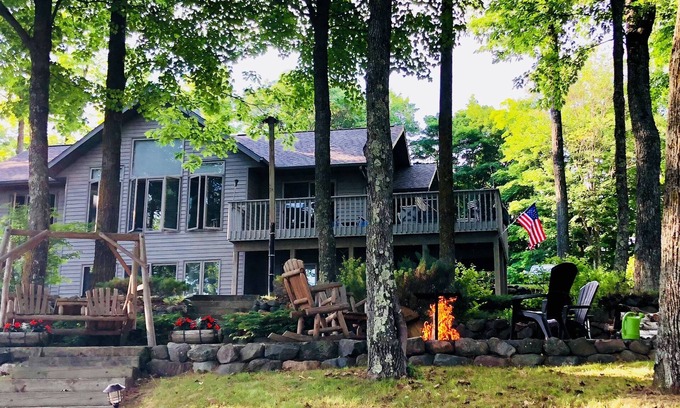 Whether you like to fish, kayak, ski, snowmobile, entertain, RELAX...Adventure North is the place for you! This lakehouse has beautiful views, which can be enjoyed from the dock, the large front deck, the spacious stone patio/firepit area or from almost every room inside the home. The property defines relaxation and accommodates up to 12 people between the 4 bedroom/2.5 bathrooms in the main house and the 5th bedroom/1 full bath in the nearby bunkhouse. The comfortable Great Room has a gas stone fireplace, adjoins the dining area, which is right next to the open design professional kitchen. This kitchen is well-equipped for creating amazing vacation meals. The Master Bedroom (on the main level) has a King bed, with an ensuite bathroom complete with a whirlpool tub! The relaxation continues on the lower level, with a large Family/Recreation area, as well as 3 more bedrooms and a full bathroom. Walkout on the lower level right to the stone patio with a fire for roasting hotdogs or s'mores, while overlooking the lake. The short walk down to the lake is made easy by the beautiful stone walkway. At the lake, you will find a canoe, 2 paddleboards, and 3 kayaks, provided for your pleasure. Lower Twin Lake is one of the 6 lakes on the Tiger Cat Flowage. It is a class A Tiger Musky lake. If you don't catch the "fish of 10,000 casts" you will be sure to catch some walleye, bass, perch or pike....hopefully! Nearby you will find numerous excellent restaurants and bars, with downtown Hayward only being a 15-minute drive. Your Northwoods Adventure awaits!