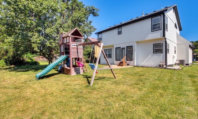 Discover the perfect family getaway at this stylish 4-bedroom, 2.5-bath vacation rental in Olathe! This pet-friendly home features modern amenities, including a stocked kitchen, a workspace with a monitor, and a children's jungle gym. When adventure calls, check out Overland Park Arboretum and Botanical Gardens, or head into Downtown Kansas City for dining, shopping, and entertainment! At day's end, curl up next to the fireplace for a movie night with loved ones.
