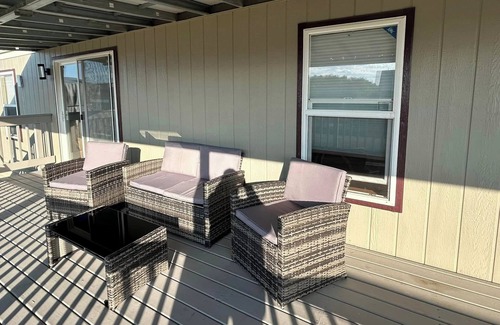 This private 2-bedroom and 2-bathroom home features a cozy and comfortable interior and modern amenities. The spacious living room and two private decks are perfect for relaxing and enjoying the panoramic views of the surrounding mountains and valleys.