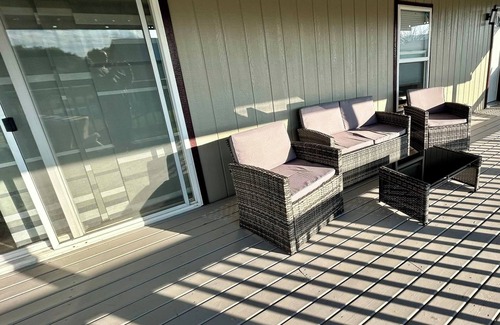 Both bedrooms have comfortable beds and plenty of storage space. The master bedroom has an en-suite bathroom with a shower, while the second bathroom has a full shower and tub.