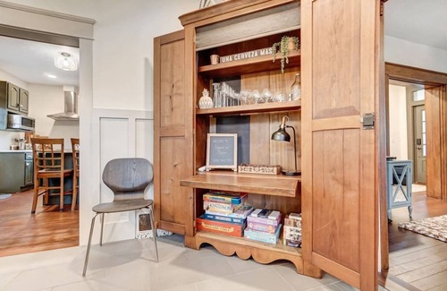 The living room beckons you to unwind and relax after a day of exploration, featuring plush couches and a large smart TV, perfect for family movie nights or catching up on your favorite shows. Adjacent to the living area is a cozy nook with a selection of books and games, ensuring there's always entertainment at hand.