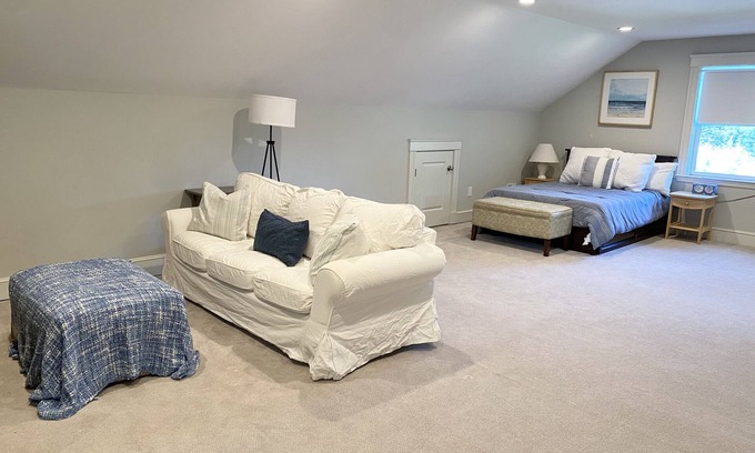 Private spacious 3rd-floor suite. Large room with Double Bed, Living room area, private full bathroom, microwave, coffee maker, small refrigerator, toaster oven, dishes, mugs, glasses and silverware. Towels and linens provided. Independent Heat and A/C zone. TV, Roku, and wireless internet included. Access to laundry included. Located within walking distance of the water. 1.3 miles to old town Marblehead and new downtown Marblehead with coffee shops, restaurants, and shops.