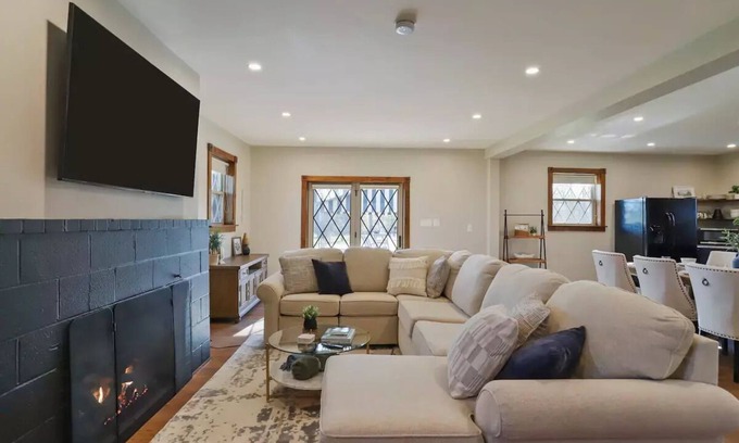 Unwind in the comfortable living room, where you can curl up by the fireplace and enjoy a movie on the smart TV with YouTube TV or log in to your favorite streaming channels. Stay connected with the high-speed wifi, and take advantage of the in-unit laundry facilities to keep your clothes fresh during your stay.