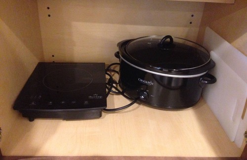500 sq ft. studio. Fully furnished smoke-free and pet-free studio with a queen bed, dining area to seat four, and comfortable living area with a 42" internet TV. Large bathroom with heated tile floor and large kitchenette to prepare meals. The kitchenette includes a fridge, freezer, microwave, coffee pot, induction cook top, crockpot, and large toaster oven. Fresh linens and towels provided. This apartment has its own entrance into our home and is completely private. Wifi, local TV, and Netflix are included. There is only one queen bed but an additional queen air mattress and linens are available on request.