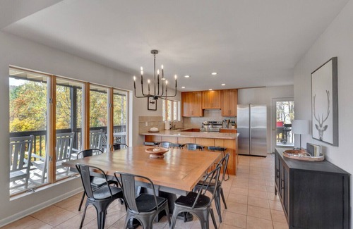Three Ridges is a spacious, private, four-season, mountain-side home with 21 acres on the quiet side of Nelson County. At only 4 miles to the biggest brewery and cidery in Central VA, you get the best of both worlds: plenty of entertainment nearby and plenty of space and quiet at home with only mountains in sight. With 5 BR / 3 BA, tons of living space inside and out, this modern and refreshed home was designed for families to reunite, church groups, bachelor parties, or girls wine weekends.