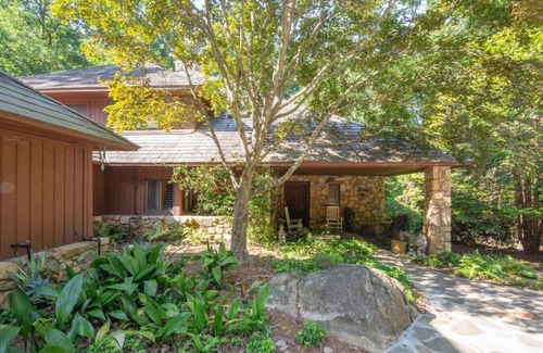 This one of a kind home is just 5 minutes from downtown Chapel Hill atop a hardwood-covered bluff. Each bedroom room features queen or king size beds and ensuite bath, and brand new appliances and furnishings throughout provide maximum comfort for larger groups. The breathtaking architectural appeal and ultra-private, restorative natural setting—with fully fenced yard!—make this space a unique experience to behold.