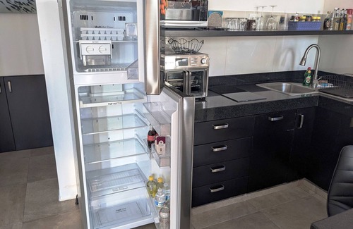 The living room and the bed room are equipped with silent (inverter technology) ACs. The kitchen is provided with everything you need for cooking.