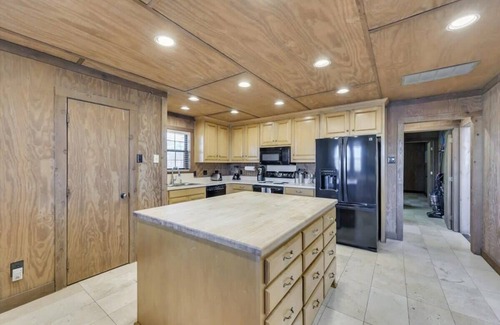 Head through the beautiful gated entryway and up the long drive to check out your temporary home. Situated on a huge 10-acre lot, it provides tons of green space, gorgeous scenery, a creek, and a pond. This home is a true ranch that embodies country living and delivers a cottage-like getaway. Inside, wood paneling provides a warm and rustic vibe. You’ll have loads of space and plenty of great spots to hang out. The furniture and décor have a traditional style which adds tons of character to the space.