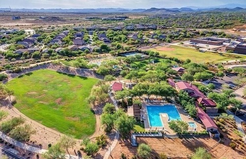 Pet-Friendly Retreat: Bring your furry family members along! The home offers a private, enclosed backyard where your pets can safely play and enjoy the Arizona sun. The community is also pet-friendly, featuring two dog parks and many walking paths to explore with your pets.
