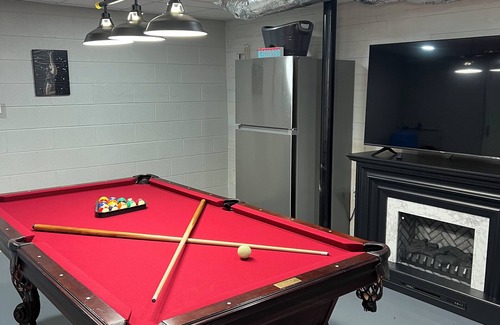 On the main level of the home you will find 3 bedrooms (each with 1 Queen size bed), 2 full bathrooms, a living room, kitchen, and dining room. You can also enjoy the covered front porch or open back deck from the main level of the house. The finished basement is home to 2 additional bedrooms (each containing 1 Queen size bed), 1 full bath, an arcade room, a game room, and a laundry room. In the arcade room you can enjoy a game of air hockey, Foosball, or one of the many games on the Mini Arcade machine. The game room offers a relaxing view and access to the back yard, a poker table, and a billiards table. There is also a sitting area complete with an electric fireplace and large TV perfect for movie night or cheering on your favorite sports team. Walk out of the French doors to a covered oasis offering ample seating and a large fire-pit for an all-weather outdoor experience. Whether it is spending your day lounging in the sun, splashing in the pool, enjoying s'mores by the fire, or playing a friendly game of poker, this house satisfies everyone's wishes for a vacation. If you prefer more adventure, the house is conveniently located within an easy drive of Lake Lookout, Lake Norman, and various shopping and dining options in Catawba, Statesville, Conover, Maiden, Mooresville, or Hickory. If you are a baseball-fan you can check out area teams such as the Hickory Crawdads or Charlotte Knights.