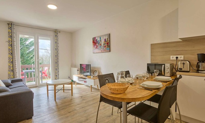 Spacious renovated T2, nature view, south balcony, Wifi, parking in Barbotan | Apartment in Barbotan-les-Thermes