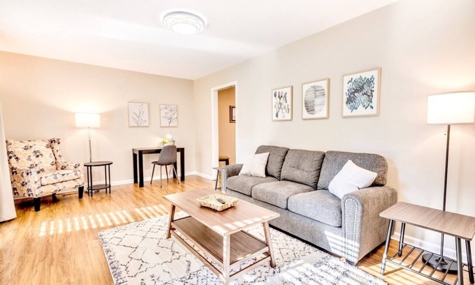 Recently upgraded and beautifully furnished throughout, this spacious and private three-bedroom home features an open floor plan with an upscale kitchen, dining area, dedicated workspace, and a living room with Smart TV.