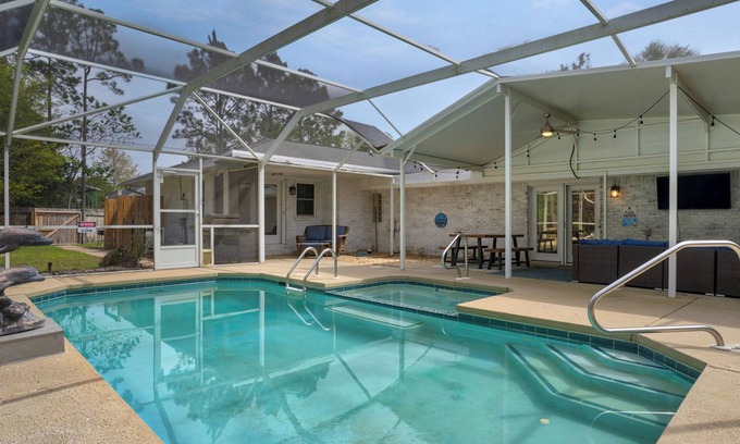 Spacious Retreat w/Private Pool, Spa, Fireplace + Attraction Tickets! is located in Santa Rosa Beach. Spacious Retreat w/Private Pool, Spa, Fireplace + Attraction Tickets! provides accommodation, featuring Fireplace/Heating, Hot Tub, Internet, among other amenities. This House features Fireplace/Heating, Hot Tub, Internet, to make your stay a comfortable one.