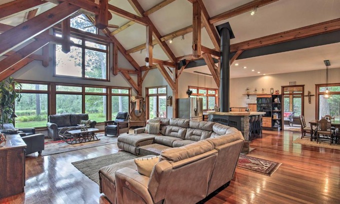 With river views, this accommodation offers a patio. Both parking on-site and free Wifi are accessible at Spacious Riverfront Escape with Private Hot Tub. The air-conditioned vacation home consists of 3 bedrooms, a living room, a fully equipped kitchen with a dishwasher and a coffee machine, and 4 bathrooms with a hot tub and a hair dryer. Towels and bed linen are offered in the vacation home. The property has an outdoor dining area. Rhinelander-Oneida County Airport is 25 miles from the property.
